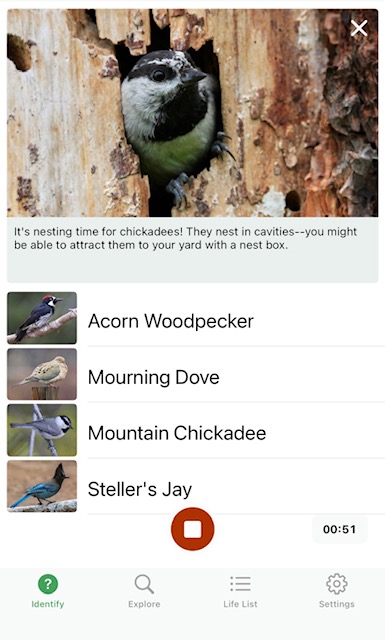 What a fun find! Out of state friends popped by today and shared this app with us. In seconds it identified the birds out singing, then you can click through the app for more info on each bird.