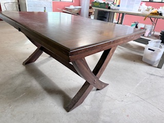 Very sturdy but used in our workshop so top needs refinishing or maybe just a table cloth! Who ever reaches out first, wins the table!