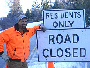 Many of you knew Chuck Stoffel who lived on Palomar and worked for the County Road Station for many years. Chuck always enjoyed posting one of our favorite signs during snow days at the Crestline and Bailey Road entrances.