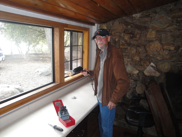 A few days ago I happened by the Community Center and saw Earl’s car. (It has been there MUCH of the past year or so, with he many months he has put in.) Went in to see Earl’s latest project. He was finishing up installing a computer work station that could have many uses in the years to come. He picked out the beautiful new furniture too Mission style – no fabric to the floor to temp the critters to take up residency.