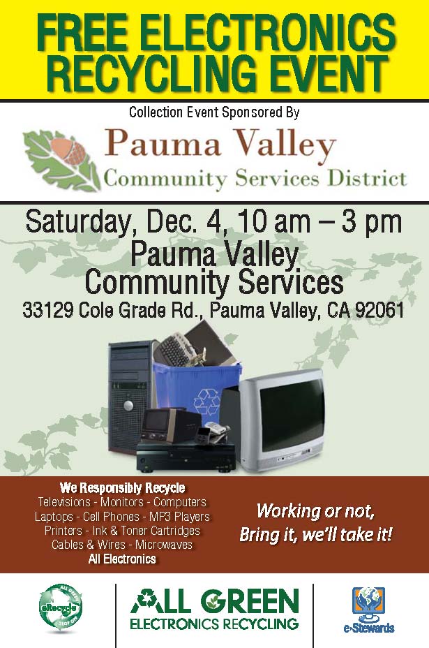 You are invited to drop off your All Green Electronics Recycling for FREE