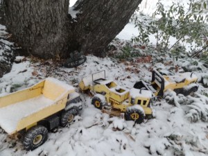 The snow plows are out on the Mountain! (I couldn’t resist sending you this photo of the trucks under our big oak tree.)
