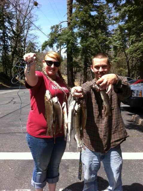C. Gladding and R. O’Malley both from of Vista, stopped at the kiosk on their way out to share their trout limits.