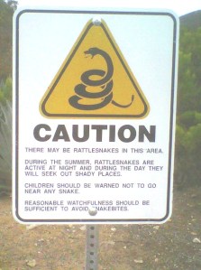 Have dogs? There is Rattlesnake avoidance training available at High on Kennels. I spoke to the owner the other day who also cautions parents to talk to their children about wearing boots and jeans in this weather, not putting their hands into holes, really watching out for snakes and running like crazy if they see one.