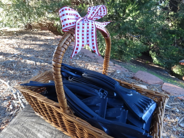A big package arrived yesterday filled with Ice Scrapers for Palomar folks! Gene Powers owned the A-Frame just east of the Lodge for 32 years. He moved to Iowa in 2009 but when he walks in most every store in his home town, he sees Ice Scrapers that make him think of Palomar. Since ice scrapers aren’t readily available in So Cal, he decided to buy them out, and send them our way. This is the second time we’ve had a delivery of Ice Scrapers from Gene and I think it is quite fun. These are extra special since they have ice chippers on the sides.