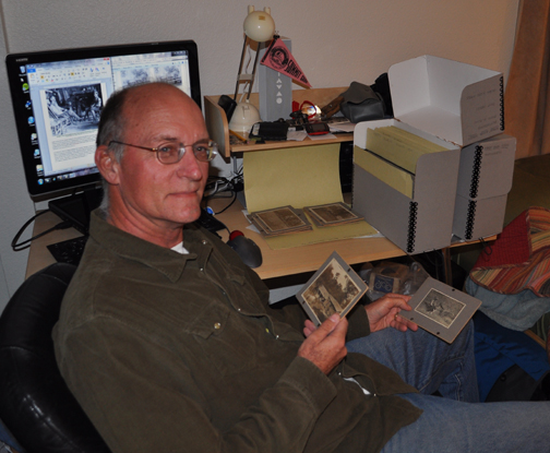 I’m not even finished yet, but I had a few questions for the author!  First, I thought we should have a photo of where Peter has been spending most of his life since he tackled this project July of 2013. Here you see him perusing some Robert Asher photos, including some of Mr. Doane, of course. Peter pointed out the pink Palomar Mountain Summit Grove felt pennant by the light on his  desk… it’s part of his Palomar Mountain collection.  (Double-click the photo to enlarge).