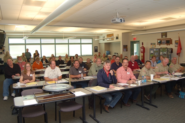 Photo 2 – Training class at San Marcos Regional Fire Training Facility. 23 new volunteers to staff Boucher Hill and High Point lookout stations. (You can see Glenn Borland and Robert Carlyle right behind him.)