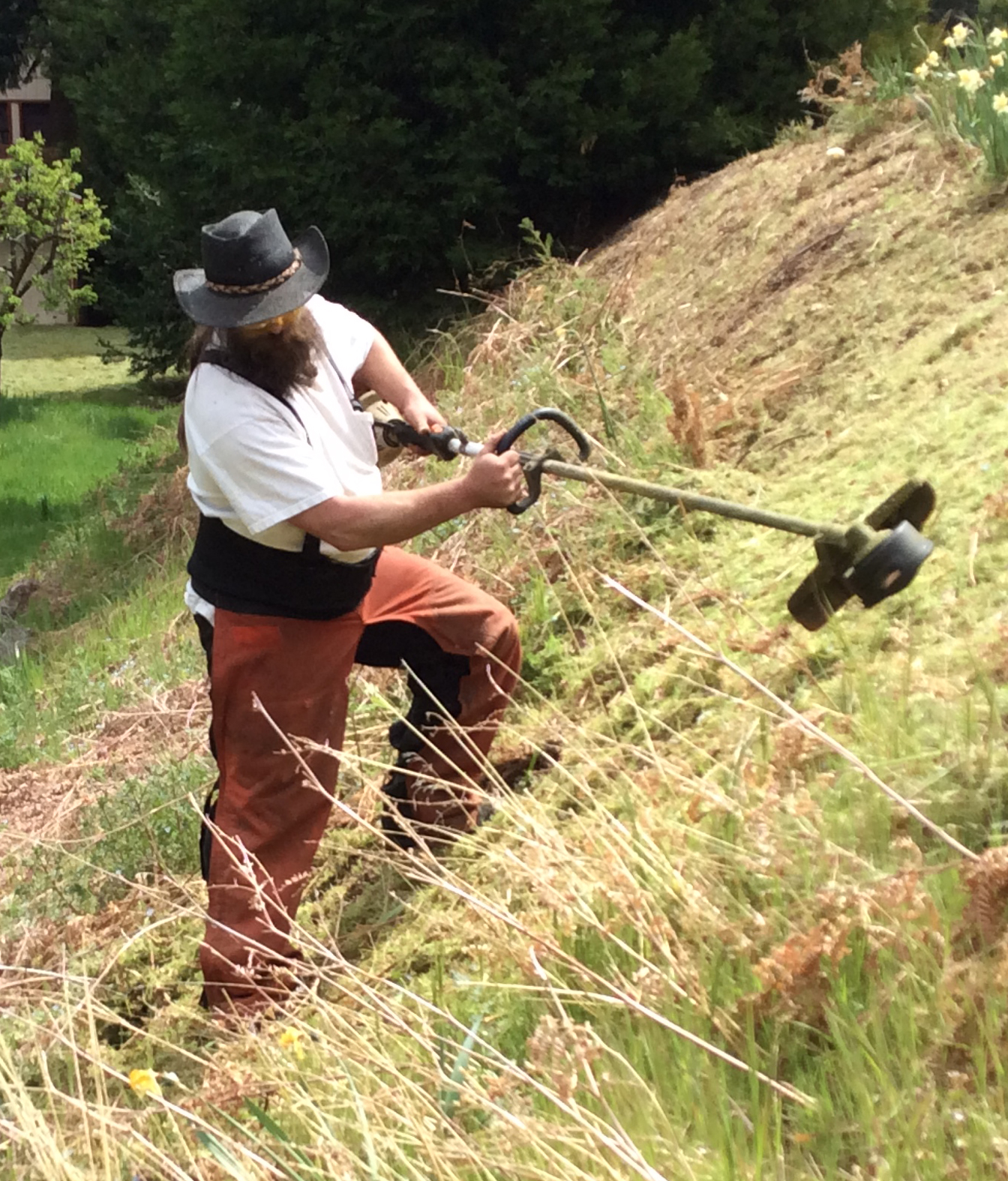 Lee Baker calls himself “The Mountain Goat” this time of year. He sure does a great job with that weed whacking and brush clearing. He has his own equipment and fuel and is ready to go to work. He is booked in advance a bit now, but welcomes your call and is glad to be of service out and about on the mountain.