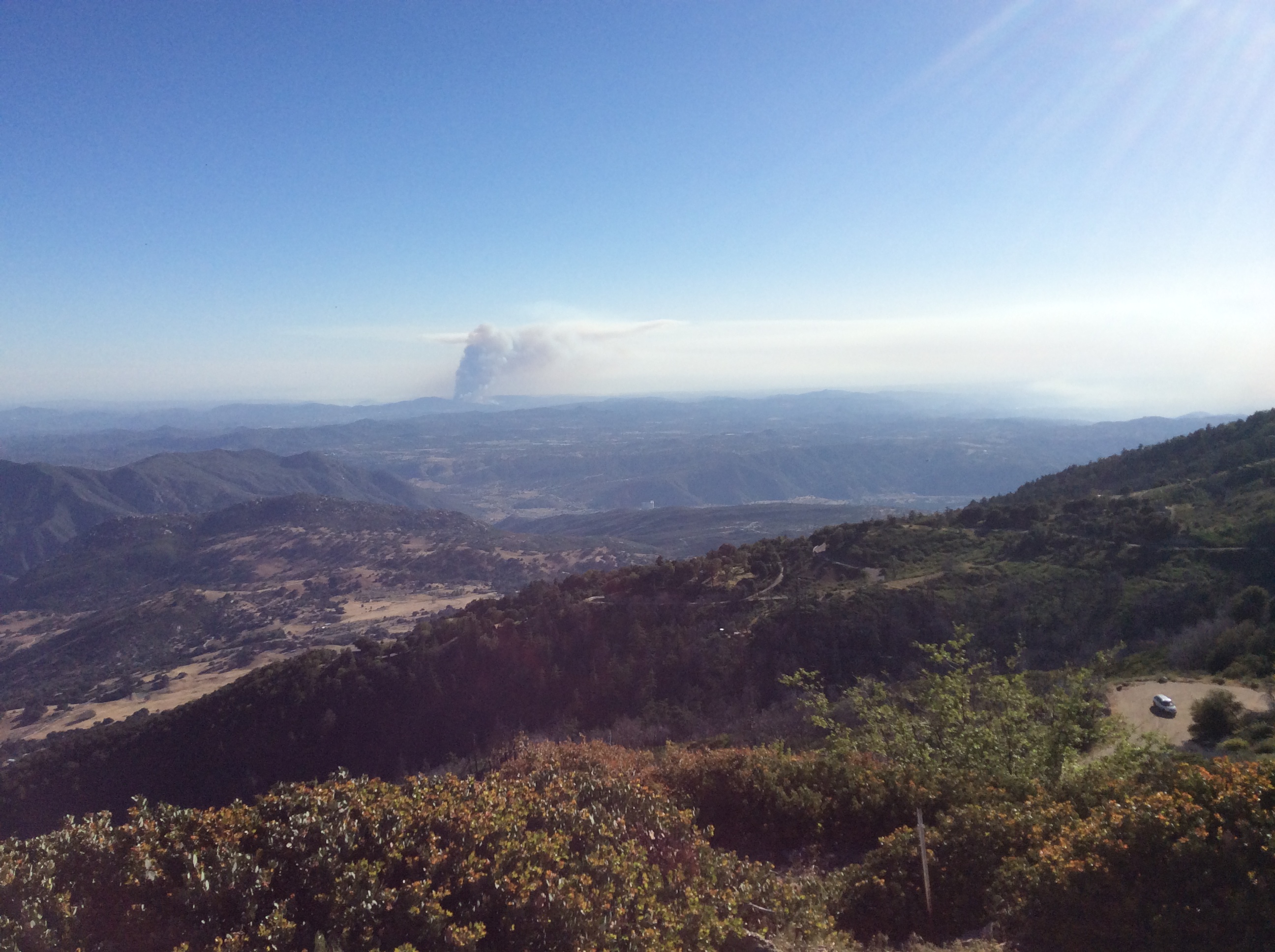Thankfully, Palomar Mountain’s Boucher Lookout was staffed today! Curt Waite was training a new volunteer, David Stone and working with another volunteer, Rick Fitch ‘looking for smokes’. With the strong Santa Ana winds and temperatures in the mid 90’s off the mountain (is this really May?), Curt reported that the crew called in ten fires that sprang up. Curt told David that he got more experience today than he would in five years. Sure glad those guys are up there looking out for us.