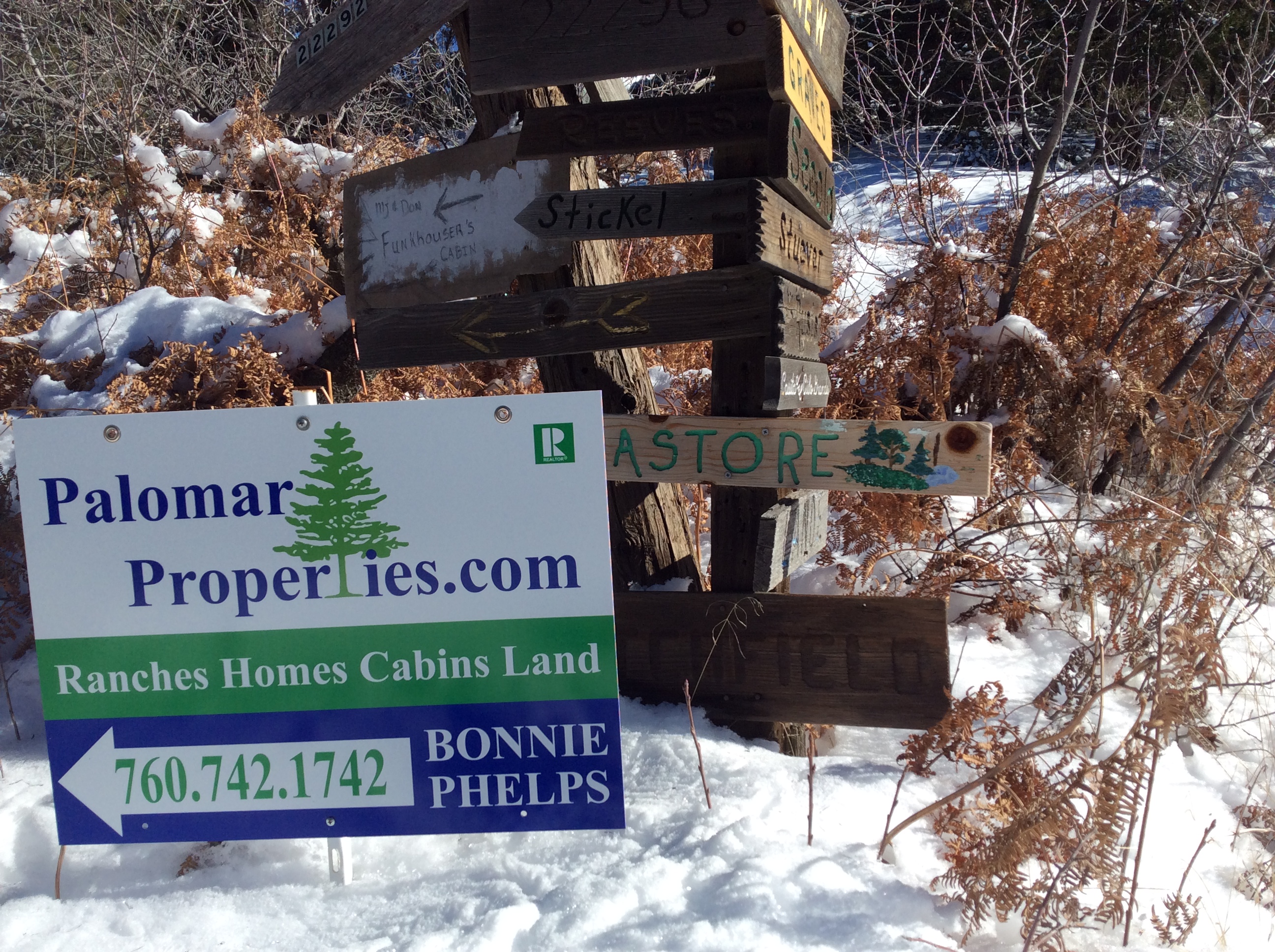 palomar mountain signs    DSC05697 DSC05698 DSC05706  sign  The snow is just a memory now but I just had to put these up for you.  When Palomar is a Winter Wonderland, the main roads are now posted “Residents Only”.  Would you like to bring your family up and get past that Road Closed sign?  I am glad to help with that!