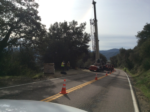 Going down the East Grade, we stopped for a few minutes while a huge crane was getting in place to set some new poles. We were told that SDG&E is replacing wooden poles with steel poles, across the mountain. The plan is to have a safer situation during fires, storms and high winds.