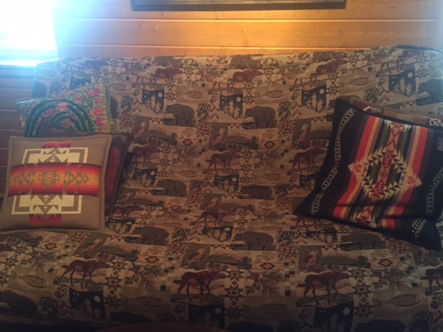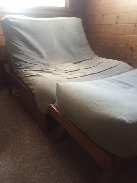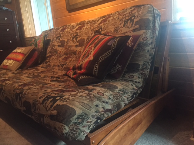 Great mountain theme fabric on the futon! Both in like-new condition. On the mountain. Best offer gets them!