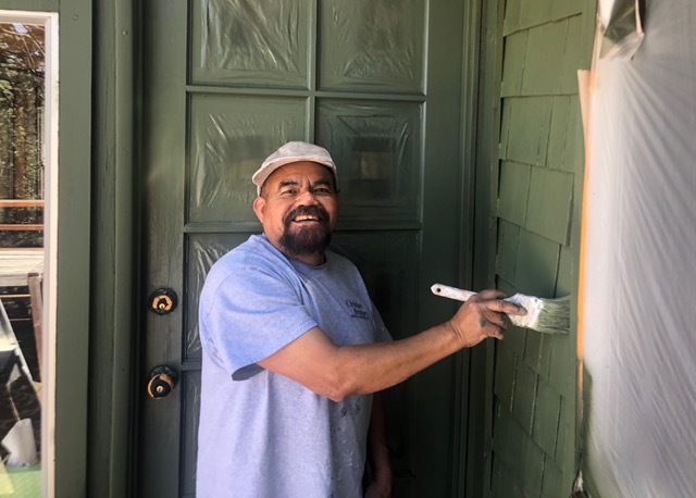 Well, that was quick! Humberto is finishing up painting his 9th cabin on Palomar Mountain. I pulled over quick when I saw him a couple years ago at his first property. I walked around a bit and asked him to come paint our house next. He does a wonderful job and is a pleasure to deal with. Two coats on this cabin after a great job prepping are done now and the deck looks fresh and ready for the new owners.