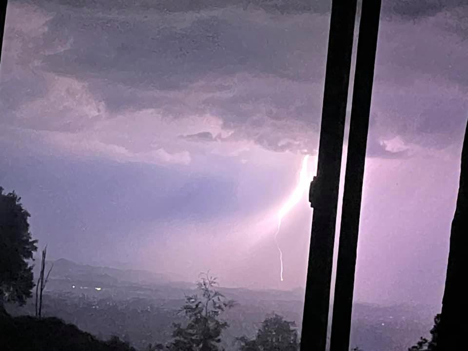 Wow, what a show! For those of us on the mountain, we’ve all been awake since about 4:16 am. Much-needed pouring rain, then thunder with a lightening bolt that sounded like it could have touched ground close by. I got up to unplug electronics then ran outside to enjoy the show and maybe have photos for you. But, Teresa McCarthy’s turned out a lot better than mine, so I had to share. (Thanks, Teresa!) It was so fun to see the storm move over us then out to the Pacific. You city folks had a an early morning wake-up, too. Oh look, a chance of more on the way!
