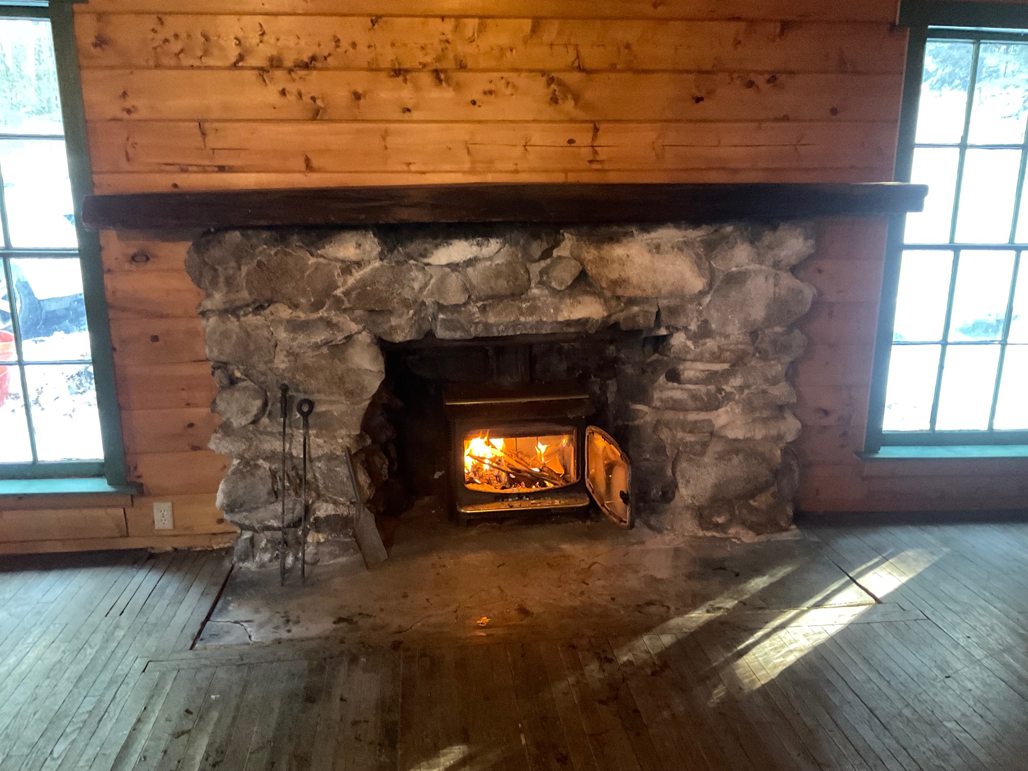 Bonnie Phelps, Realtor, enjoying our big fireplace tonight on enchanting Palomar Mountain