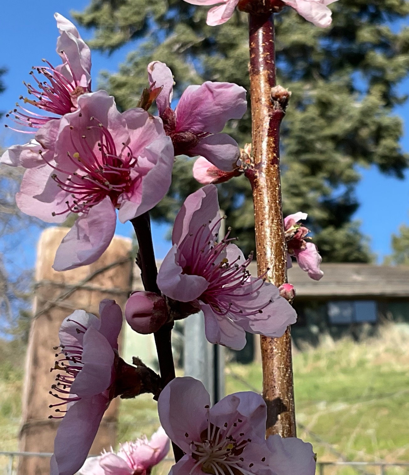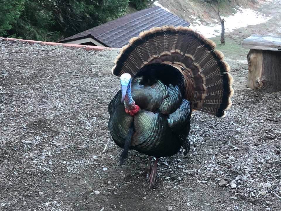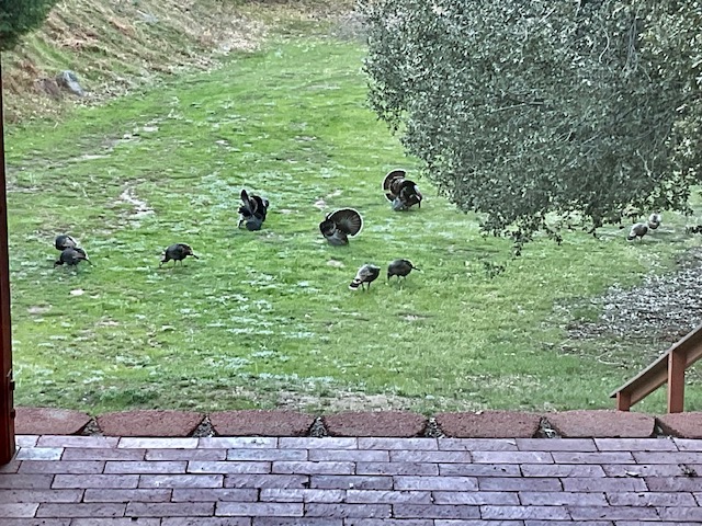 Meanwhile, Spring is always so beautiful on the mountain. I love to listen and watch our family of turkeys, often just from my desk where this flock was spotted. They enjoy walking right through our parking area, across the patio and hang out in our orchard for sometimes hours a day.