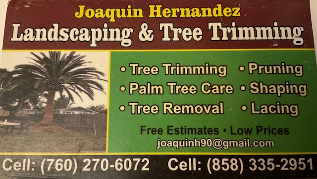 Found: Exceptionally good, much needed, weed wackers and property clean up crew with Hugo and Joaquin. Joaquin came highly recommended by quite a few north county folks and was willing to come to Palomar. We had them up all week with up to 5 guys in one day working on about 25 acres. What a transformation. It was so inspiring to see their work ethic. Hugo is an amazing ‘singing machine’ up and down the properties with a weedeater. Yes, singing as he is working so very hard and always with a smile.