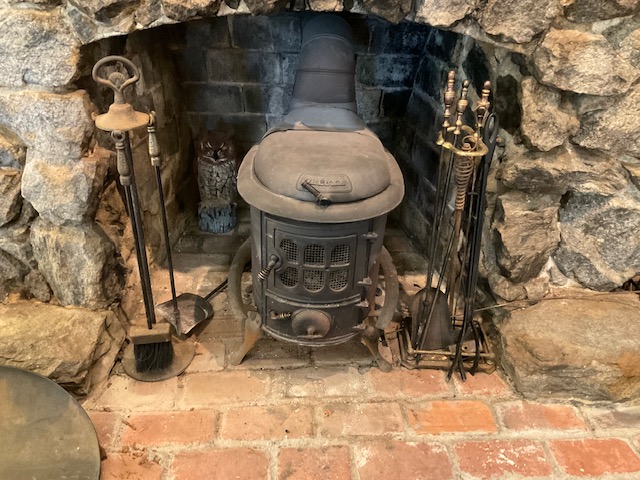 The leaded glass front door was from their home in Escondido when they did an update there. She had a fun story about the wood stove in the fireplace. Years ago we had a dump on Palomar. It bacame a social gathering place. Debris was dumped in the big dumpsters but good stuff was set to the the side. It just so happens this little wood stove was waiting for them one day. They loaded it up in nothing flat as they had to bring their fabulous find back to the cabin. Just a little bit of wood provided so much more heat than needing to stoke the big fireplace.