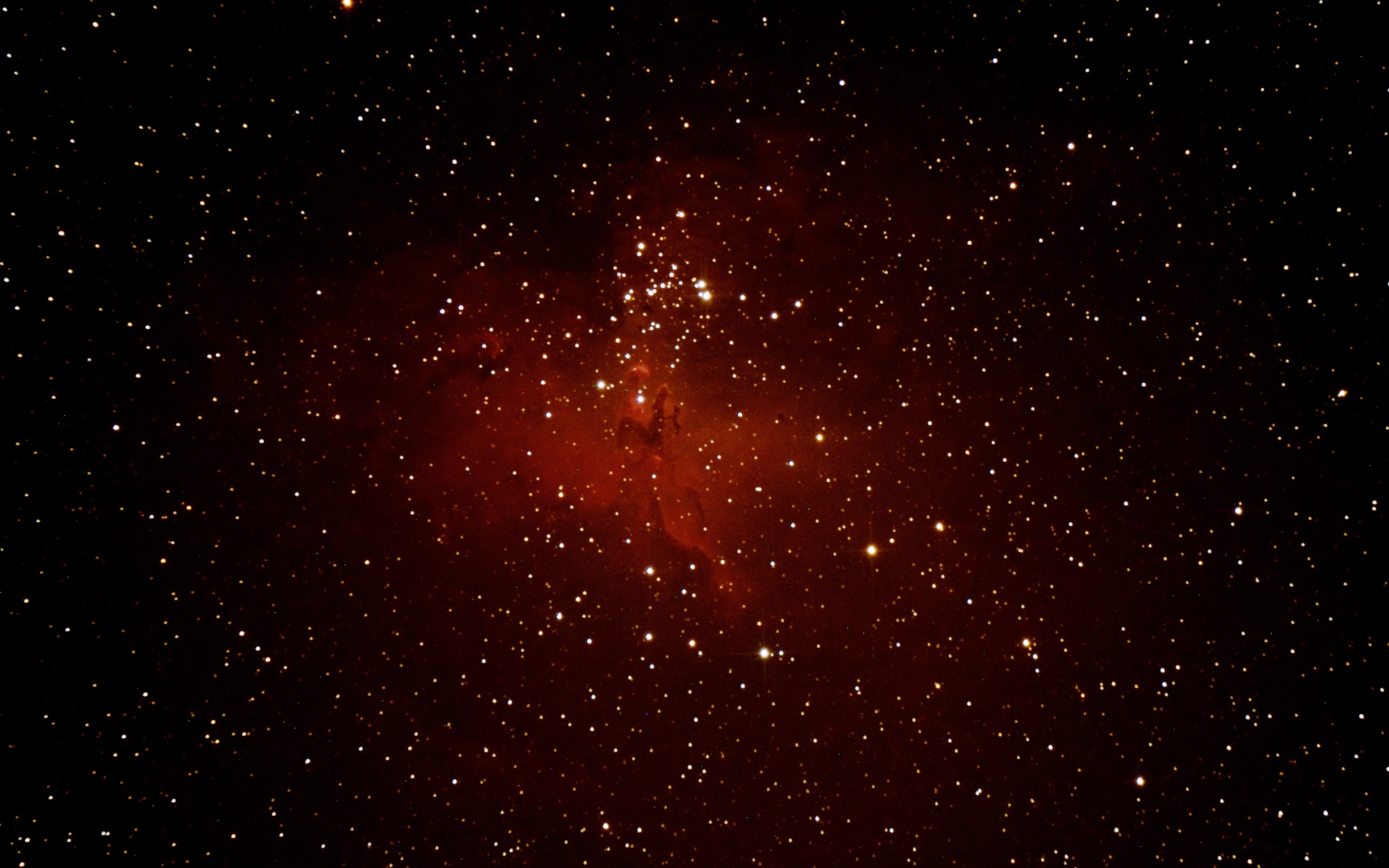 #6734: The Eagle Nebula (The Pillars of Creation), a star cluster and star forming region of glowing interstellar dust lit by new stars in the constellation Serpens. Located 5700 lightyears from Earth.