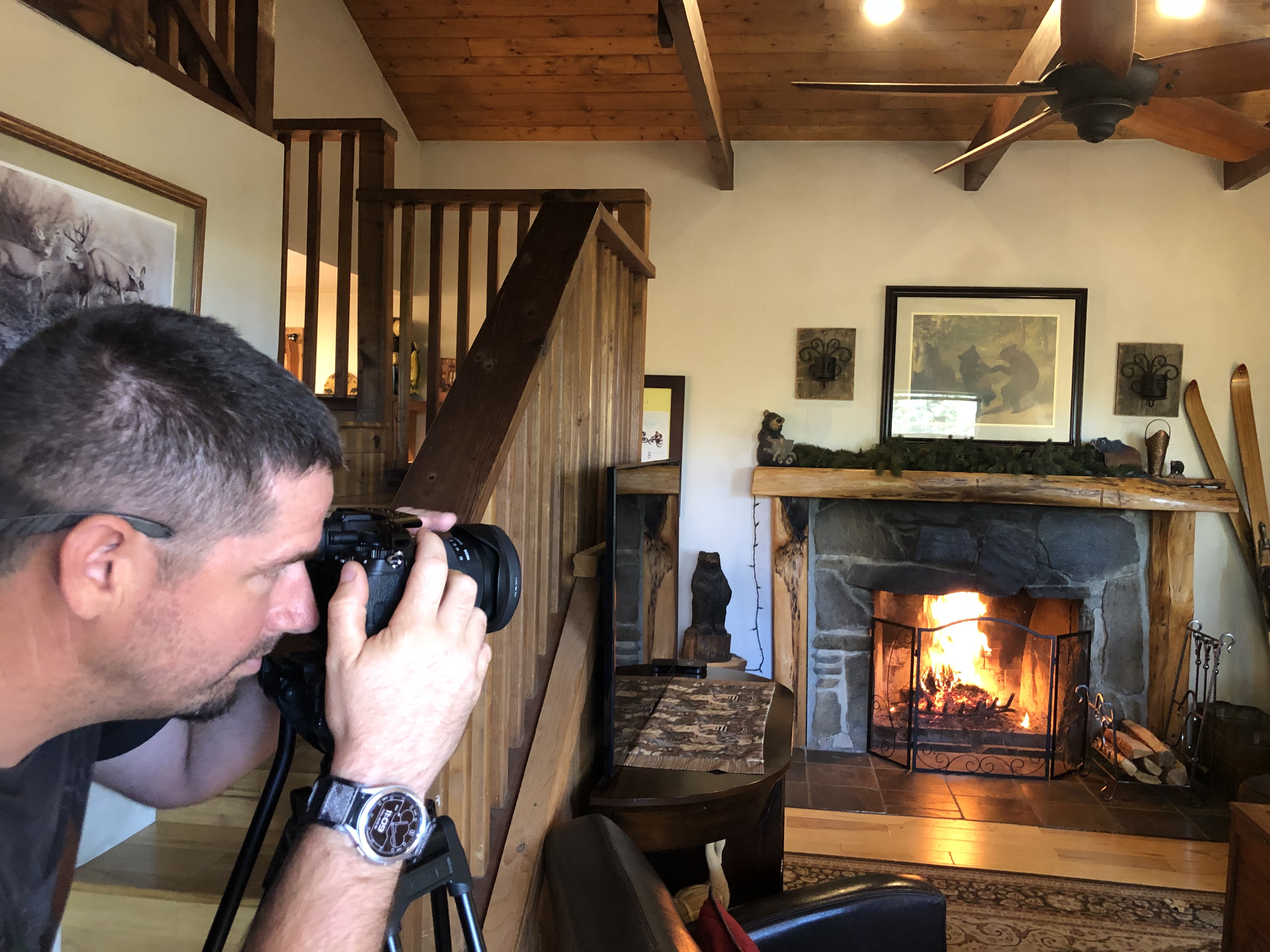 Fancy photography with a drone was on the list for a few properties. I knew one of our mountain neighbors, Danny Cruz, flew drones and reached out to him. Well, Danny said his good friend Levi Dixon is the BEST. So, I staged all, ran around before he arrived to have the lights on, drapes open and everything as good as it was going to get. We took off and it was ‘lights, cameras and lots of action’. He shot five different properties in ten hours. Yes, we ate lunch and dinner on the run! I counted eight sets of stairs we ran up and down many times to get the perfect lighting and just the right angles. He offered to drive so it was my first time in a Tesla Model 3 – so much fun.