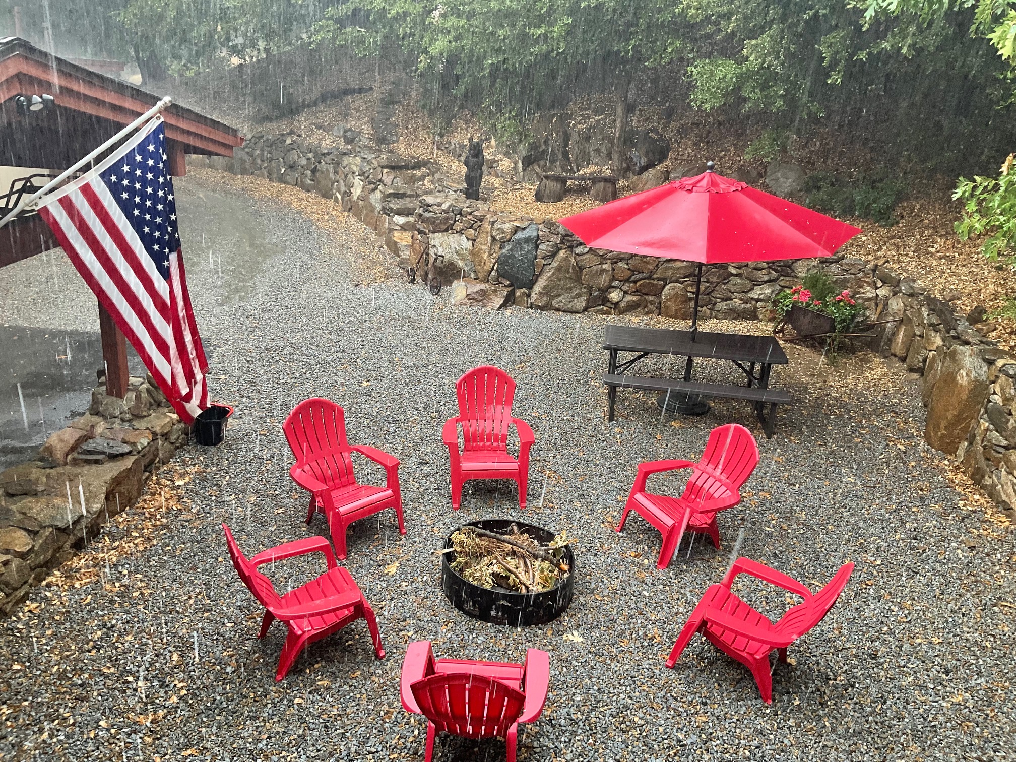 It was a sunny, warm day. Within a few minutes, I noticed it got a little dark and had cooled off. I checked the forecast, no rain predicted at all. Suddenly, those clouds opened up and it poured rain!!! Neighbor, Jim Hamerly reported measuring 1.1 inches of rain at their place on Fern Meadow. Thinking that came down in about an hour. So thankful and it smells sooooo good!