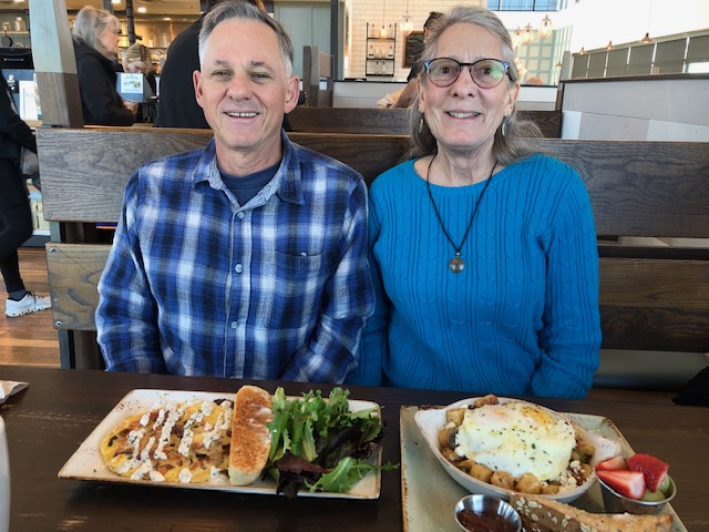 Celia still subscribes to Palomar Mountain News and saw a post about me being in Missouri. Were were practically next door so had to meet up. A new Costco was built in Missouri last spring. Karl and Celia did a happy dance for their grand opening as it is only 2 1/2 hours from their cabin on a lake! They sometimes cross Bull Shoals on a ferry, which happens to be the last free ferry in the USA! (We thought Palomar was rural). Our Missouri house is right on the way so they picked me up to tag along on their shopping day. That new Costco? It is only 15 minutes down the road. We had so much fun with lunch, our shopping adventures and catching up.