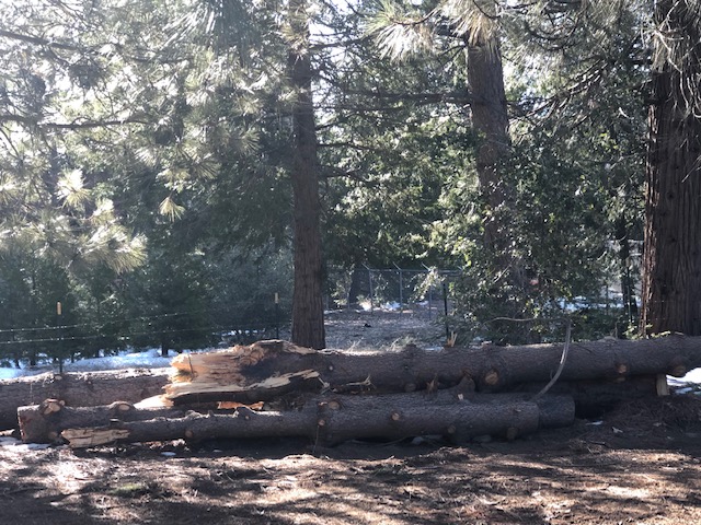 A couple big Coulter pines came down in that last storm on a client’s land. The trees are limbed and ready to buck into logs or cut some large pieces and have them milled. It’s up to you. Pine dries fast once it is bucked up so you could have the wood for next winter.