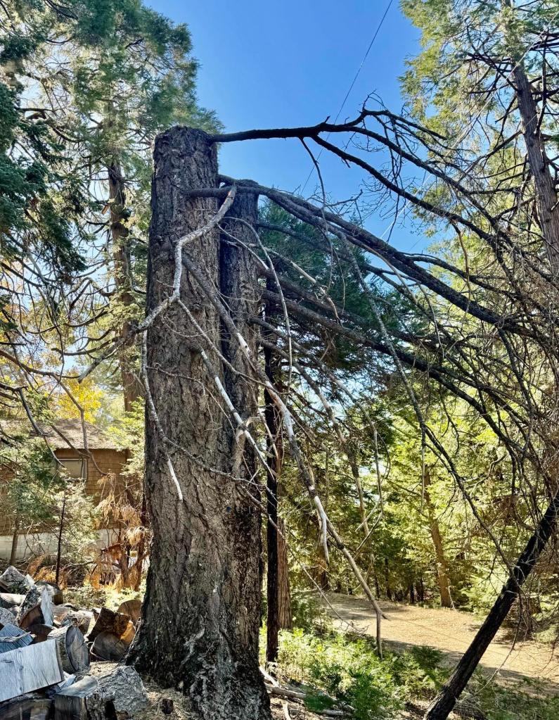 Many of us watched those branches, now of course, the entire tree die very quickly. When I first saw this “new way of grooming trees”, I stopped, talked to crews and went up the ladder for some properties to ‘finish the job’. Damage had already been done and it is very hard to get it corrected. When you cut the top of these once beautiful trees, they die and the work was not done to Cleveland National Forest Safety Standards nor compliant with Cal Fire requirements for keeping your property Fire Safe.