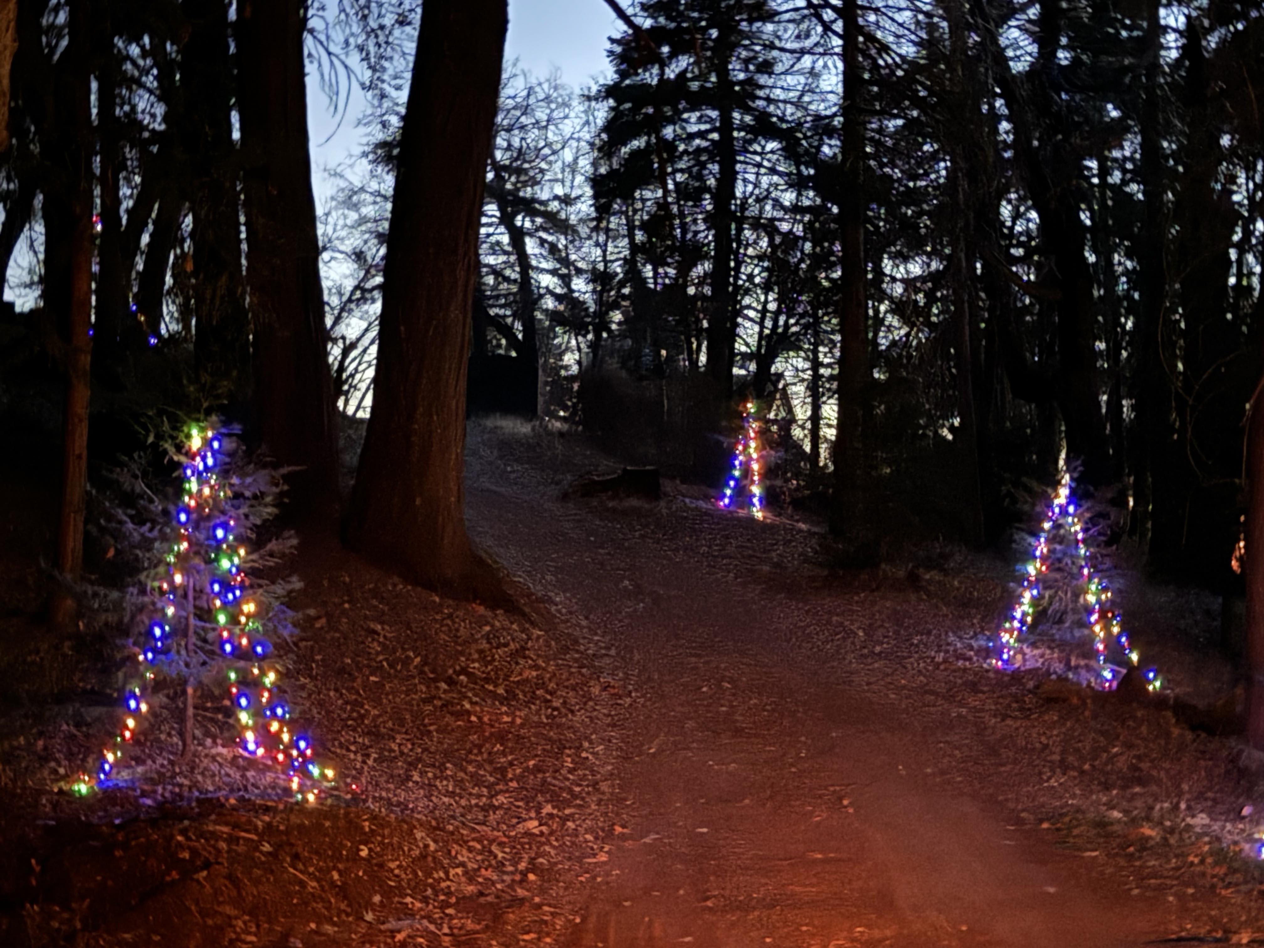 Some cities have entire neighborhoods of Christmas lights to visit. On Palomar you can drive ’round the mountain and discover what is waiting to discover. You’ll find lots more lights this year tucked away down our little mountain lanes. Thanks to all for sharing their lights with us!