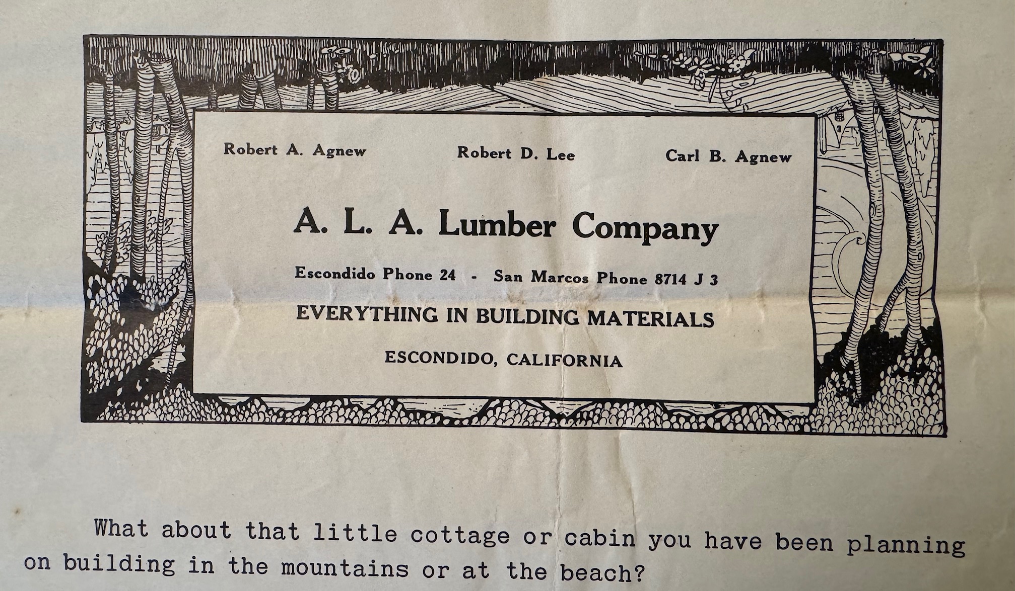 A fun package arrived from the sellers of a little cabin up here. They wanted the new owners to have the cabin plans that were used to build their special place on Palomar. Of course I had to share with you. The Escondido lumber company where the family purchased their supplies had a two digit phone number??!? Makes me wonder how many total phones were in the city in 1920? The small book gives all the instructions you need to build the cabin from start to finish. Now we know why tree stumps are so often found as footings.