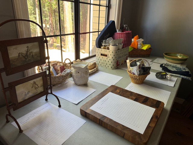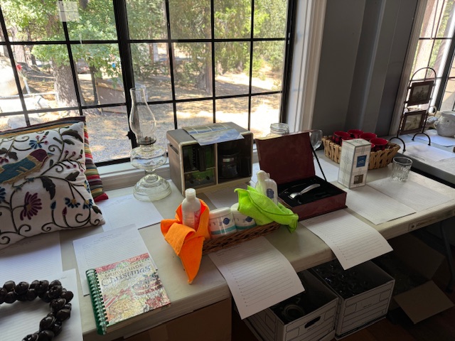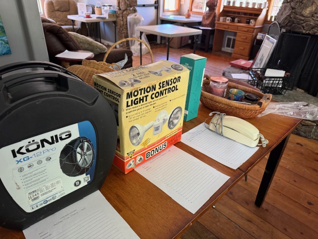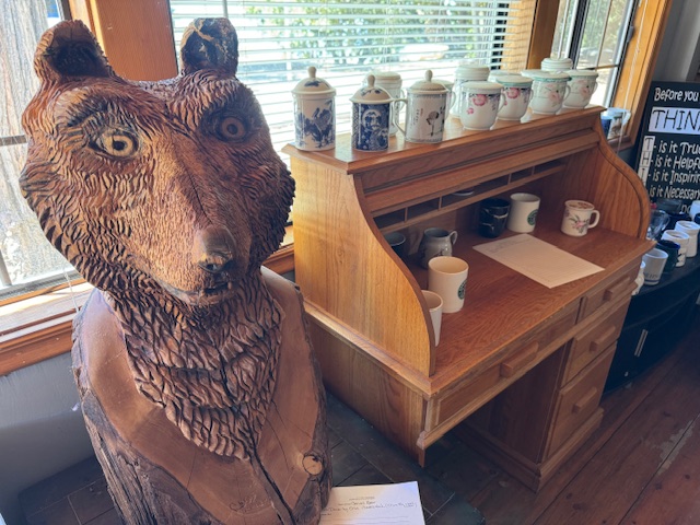 So many items have been donated to the Silent Auction! What is up for grabs? A very contented bear, hand signed by the late, Chris-the-Woodcutter Marszalek, that cute little roll-top desk, tables full of fun things! A fun cooking class! Like new bunkbeds the bedding, too, a queen frame and restored vintage dresser. Simply place your bid and keep an eye on it as others might want it too!
