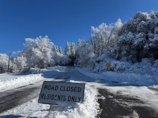 Want to come up? There are a few things to know. You’ll see a new sign at the top of the South Grade. Cleveland National Forest has created a Group Campground. They just installed posts for gates on each end of Summit Circle so that area is no longer available for parking. Also, there are ‘Road Closed, Residents Only’ signs posted at Crestline and Bailey Meadow Roads. And the Observatory is closed on snow days too, so Canfield road is ‘Residents Only’. Those three roads are closed to the public. Where to play in the snow? The Summit area by the store fills up quickly. The best place to play is the State Park. ALL other areas are private property.