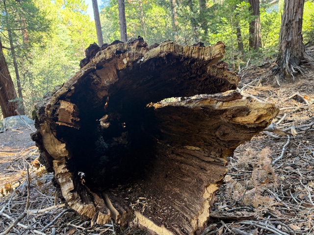 Here is a tree that I came across in my travels that was tagged for removal but this 20 foot section came down on it’s own. I looked up to see where it came from and it snapped off that trunk from about 70 feet off the ground. Hollow all the way through. It damaged a fence and partially blocked a road.