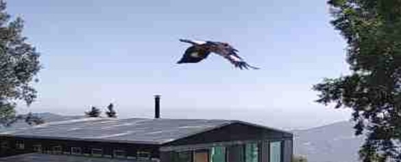 Hi, Bonnie — Oh my goodness, that actually looks like a golden eagle in that image. The golden eagles are the ones that have the white patches on the upper side of their wings.