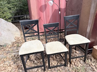 Who would like any of this free stuff? The chairs are in a garage now to protect from the rain. But dresser is heavy and out truck was full! The chair cushions are clean, just need a vacuuming. The dresser is about to have some plastic taped on top before the rain. Take the drawers out and it should be easy to move. Meanwhile, it is waiting for a lucky winner out on Birch Hill. Just let me know and I’ll meet you there.