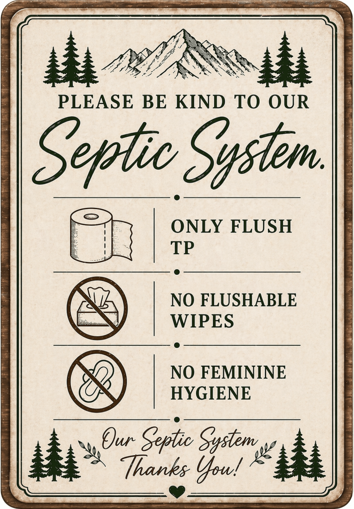 What about those “flushable” makeup or baby wipes? They flush but they don’t break down at all in a septic system. They clump together and it takes so much longer to pump. (So your service bill goes up!) Today I was blown away with what I saw in the tank – all different colors of plastic – pink, yellow, bright blue. I thought there were a few writing pens floating around – nope, they were syringes. All that stuff doesn’t break down either. For a healthy septic system, flush NOTHING but TP.