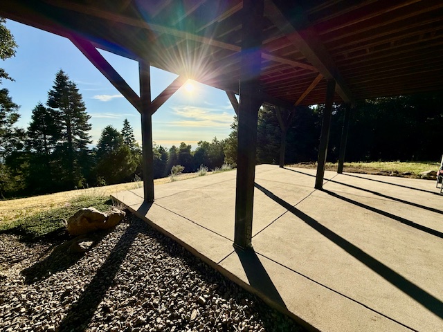The idea of pouring a little step in front of two doors, grew to be a nice patio addition pretty quick. Our son Nathan framed and laid the rebar so it was ready when Corey Miller and Crew showed up, bright and early. They poured nine and a half yards of concrete, finished it off and were heading back down the mountain in just a few hours. We are so pleased.